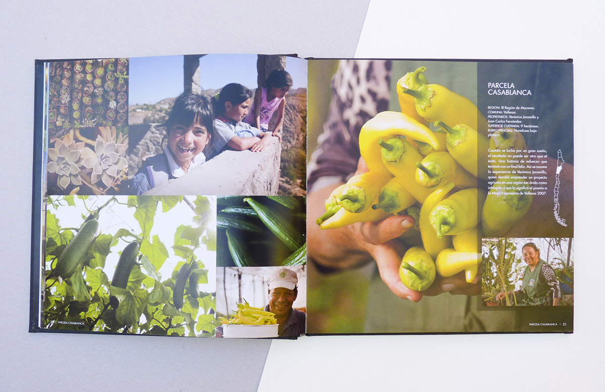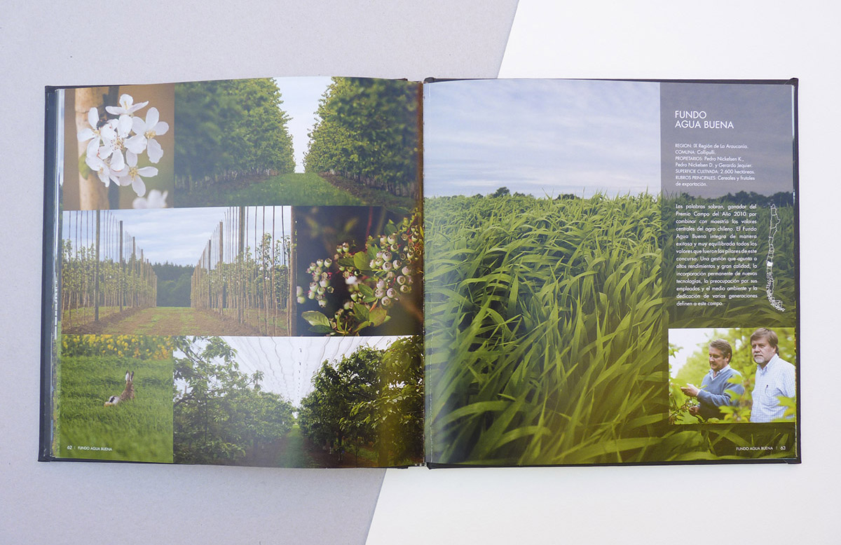 Libro de 90 páginas, con fotografías y descripción de los doce campos chilenos finalistas de concurso.